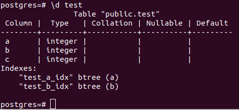 create index on test(b,a)Then in this case the column "a" will start using sequential scan and column "b" will start using the index scan when you write any condition with a single column.